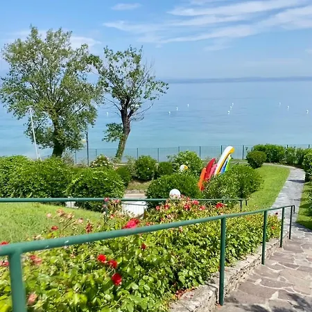O apartamento On The Beach Lake View Manerba del Garda à beira-mar inclui pátio e está localizado a 7 km do Castelo Scaligero. Para quem viaja de carro, este apartamento oferece parque de estacionamento privado gratuito no local.